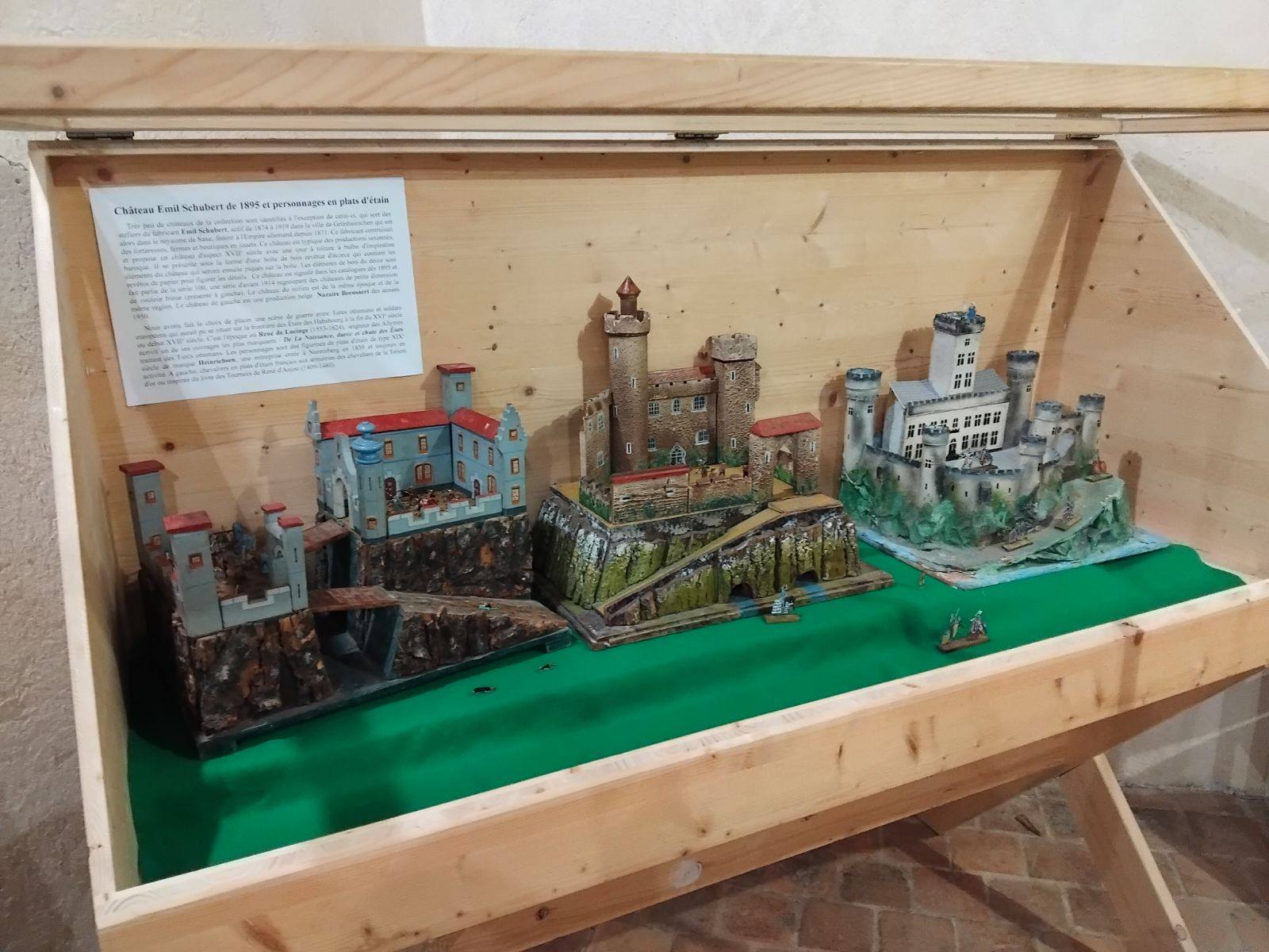 En 2019, les collections du château des Allymes se sont enrichies d’un don d’une cinquantaine de châteaux-forts jouets provenant de la collection privée de Bruno et Isabelle Chrétien. En attendant de leur consacrer un espace permanent, les Amis du château des Allymes présente cet hiver et ce printemps une partie de cette collection exceptionnelle au premier étage: châteaux en bois traditionnels du début du XXe siècle, châteaux en carton-pâte et compositions ou les premiers châteaux en plastique des années 1960.